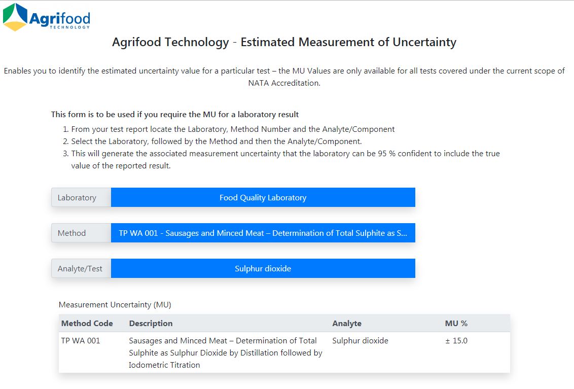 This form is located on our website at: https://agrifood.com.au/index.php/about/measurement-uncertainty